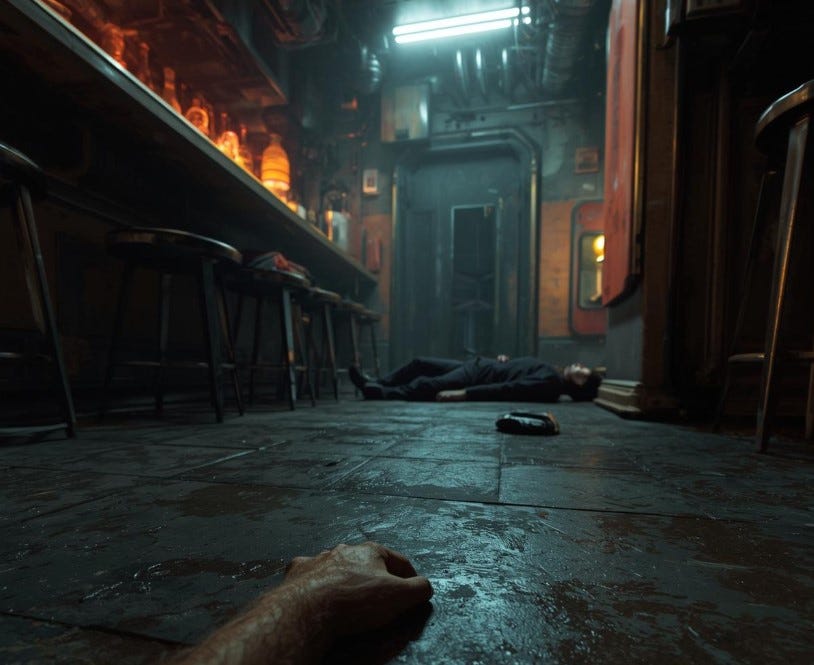 The Tavern Test was one that around four percent of trainees passed in some way, and even fewer fully passed. It wasn’t simply a test of deduction, but also a test of instinct. The holographic image of upturned tables and smashed chairs formed one by one, as well as the three bodies. Two were sprawled on the floor, clutching each other’s torn clothes, pressed together as if in the throes of bloody passion. Another had been thrown through a table, which had split in half. A simulated colonial security officer stood close to the bodies on the floor.